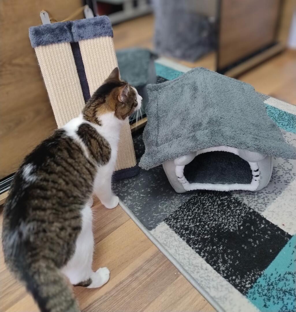 Sprzedaje zestaw dwóch rzeczy dla kota. Drapak do zawieszenia oraz domek z poduszka w środku.