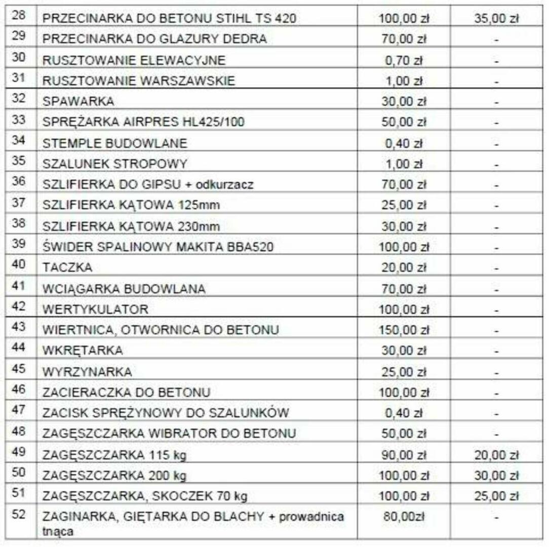 W y n a j e m m a s z y n i n a r z ę d z i b u d o w l a n y c h