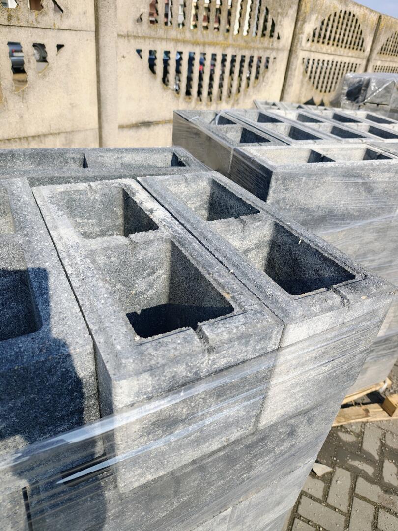 Pustak ogrodzeniowy 50x20x20 szary. Cena 22 zł sztuka. 390 sztuk pustaka, 92 szt. Daszków cena 20zł. sztuka. Sprzedam tylko w całości. Pustak na ogrodzenie. Szczuczyn, odbiór osobisty.